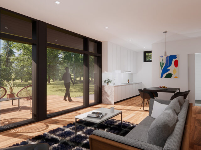 L’Abri 550-BV est la maison parfaite pour ceux et celles qui recherchent un petit espace de vie de style loft sans compromettre leur bien-être. Avec ses grandes surfaces vitrées et une terrasse intime en option, cette petite maison fait une grande place à la lumière et à la vue extérieure.
