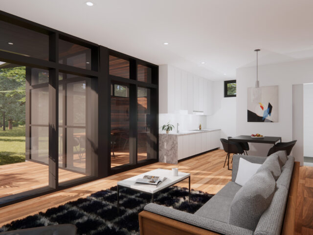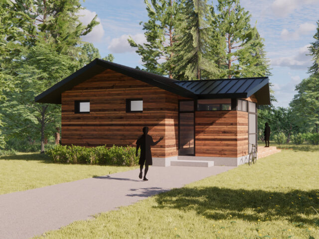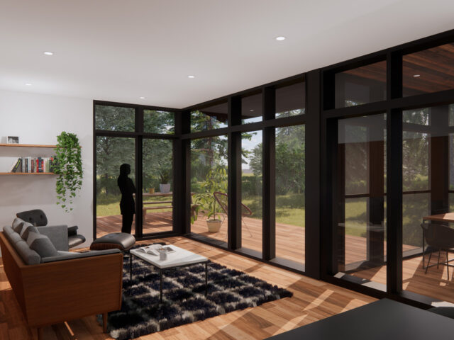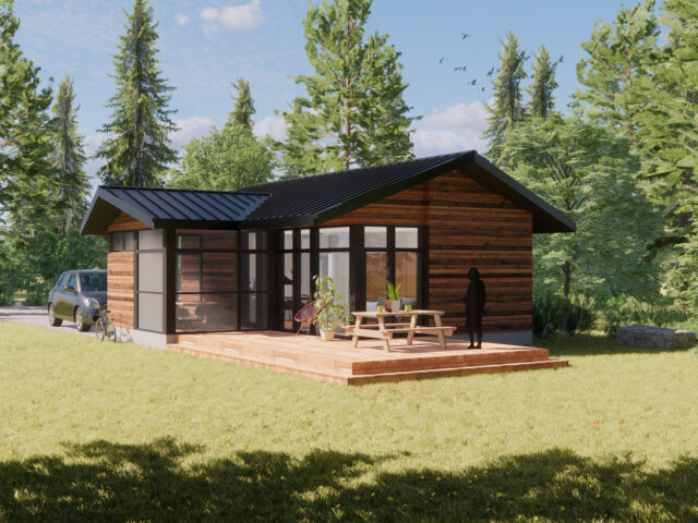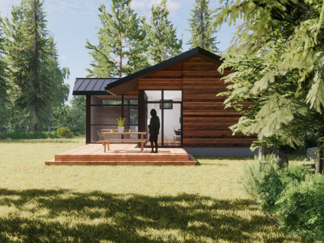 L’Abri 550-BV est la maison parfaite pour ceux et celles qui recherchent un petit espace de vie de style loft sans compromettre leur bien-être. Avec ses grandes surfaces vitrées et une terrasse intime en option, cette petite maison fait une grande place à la lumière et à la vue extérieure.
