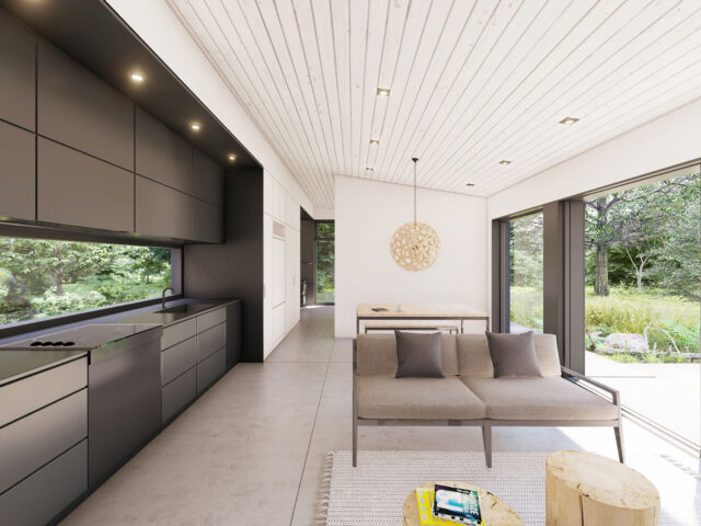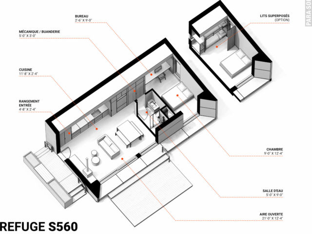 Le Refuge S560 est synonyme de simplicité, de confort et de fonctionnalité. Doté d’une vue panoramique sur la nature, il offre à ses occupants une relaxation contemplative, voire méditative. Le Refuge S560 est tout indiqué pour les couples désirant se retrouver, dans un lieu bien à eux, où ils pourront se détendre et vivre leurs divers projets intensément. Ce modèle rejoint aussi la petite famille à la recherche d’une première maison.