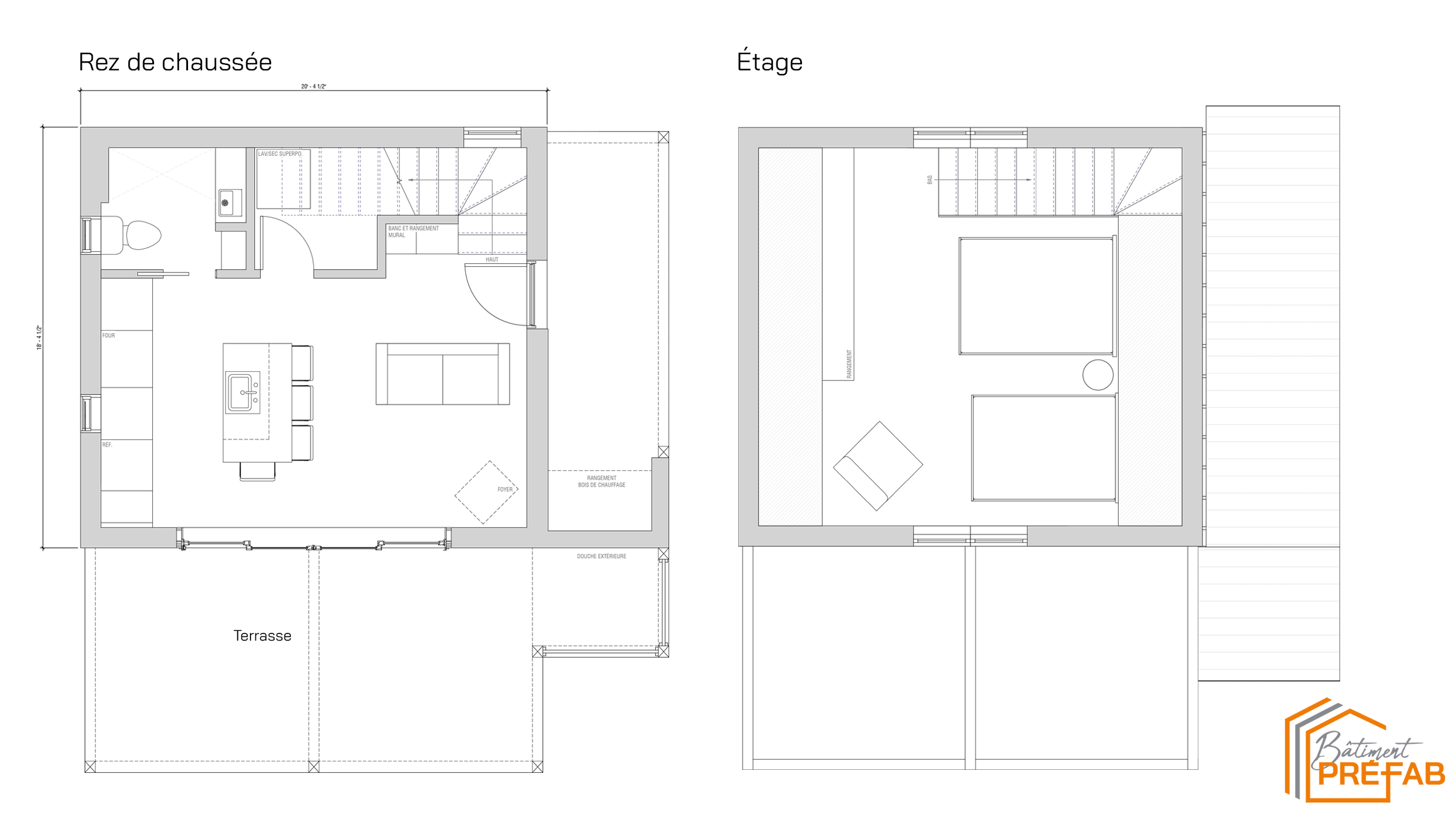 - Terrasse : 20 pi. x 10 pi. avec espace pour douche extérieure